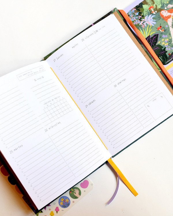 / hojas rayadas / planners mensual al comienzo de cada mes / balance de gastos / mucho espacio para completar reflexiones, datitas o frases