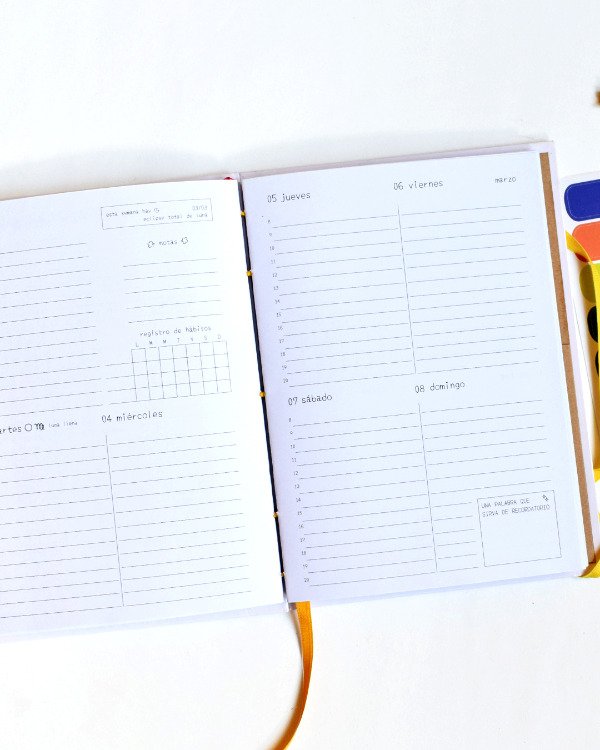 / hojas rayadas / planners mensual al comienzo de cada mes / balance de gastos / mucho espacio para completar reflexiones, datitas o frases